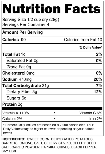 Treat yourself and your family to this luscious, creamy corn chowder when you want an easy night in. (Serves 4-6) As packaged: GLUTEN FREE, DAIRY FREE, SOY FREE, AND VEGAN