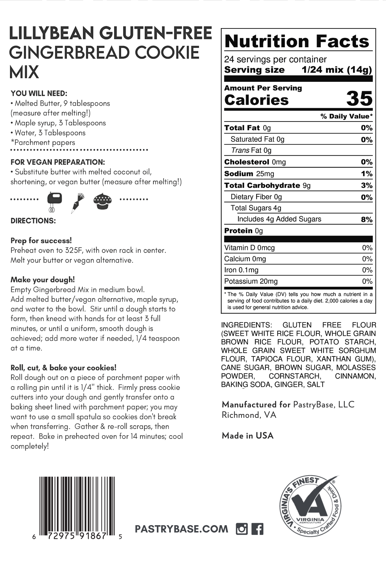 LillyBean Gingerbread Cookie Mix makes baking the classic holiday favorite a breeze! These cookies are crunchy on the outside and chewy on the inside, perfect for holiday fun or a cozy family activity. Easy to prepare and super versatile, this mix is vegan, gluten-free, soy-free, dairy-free, and completely artificial color-free—so everyone can join in on the fun!