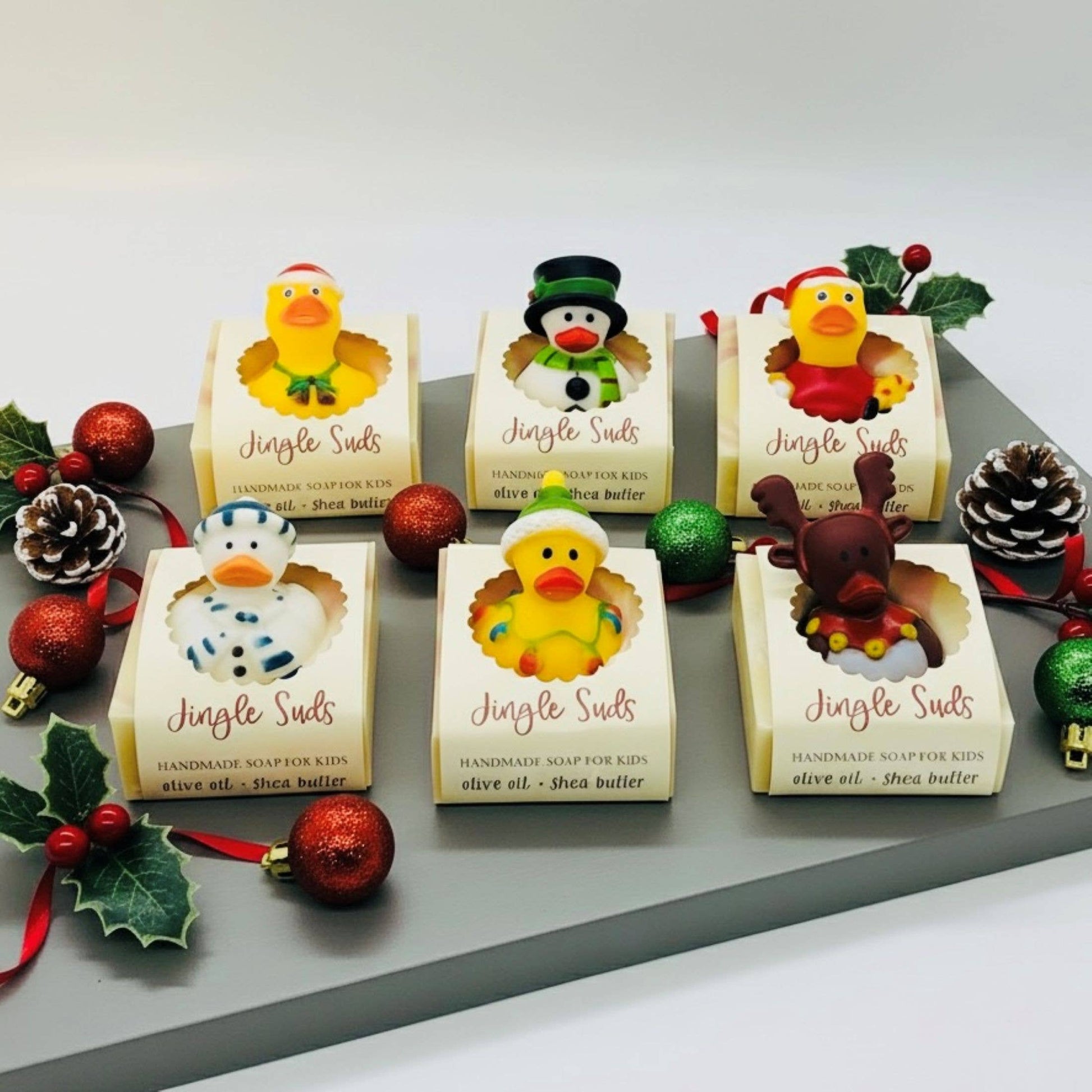 Handcrafted soap featuring a festive blend of ripe cranberries and frosted berries, accented with a bright touch of lemon zest for a fresh, uplifting aroma. You will receive one of a variety of holiday themed rubber duckies.